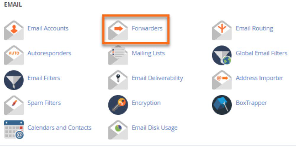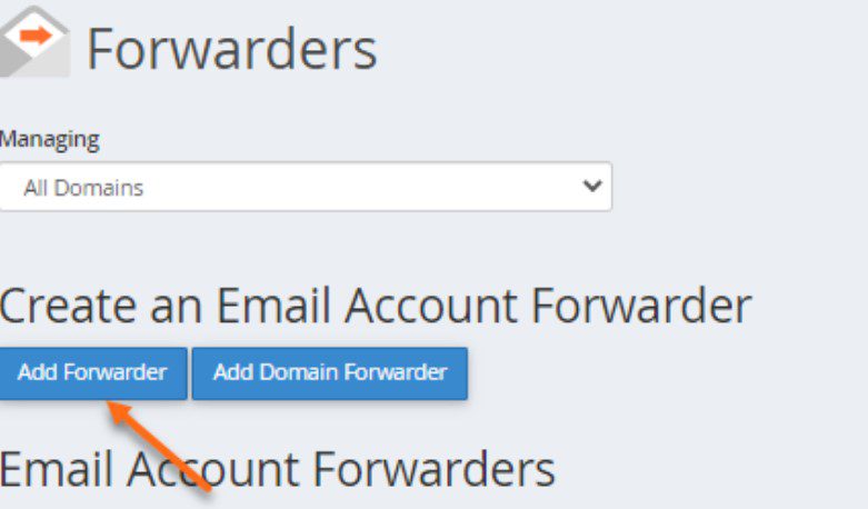1. Go to Email interface and click on Forwarders option