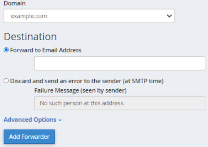 5. Pick any destination from the available options (Forward to email address and Discard and send an error message to the sender)